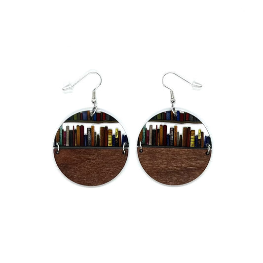 Acrylic Library Bookshelf Wood Drop Pendant Earrings