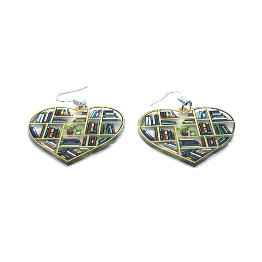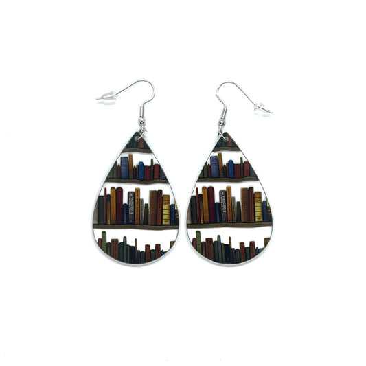 Acrylic Library Bookshelf Teardrop Pendant Earrings