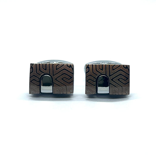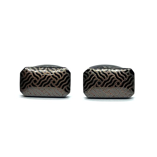 Zigzag Lined Printed Grey Metallic Cufflinks