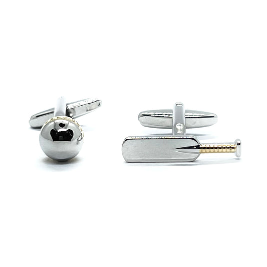 Cricket Bat Ball Golden Silver Cufflinks
