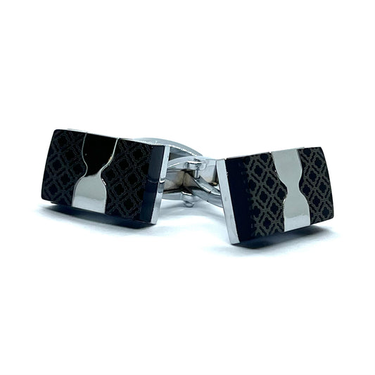 Check Lined Long Printed Grey Metallic Cufflinks
