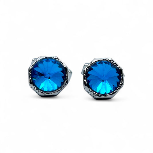 Crystal Blue Vintage Silver Cufflinks