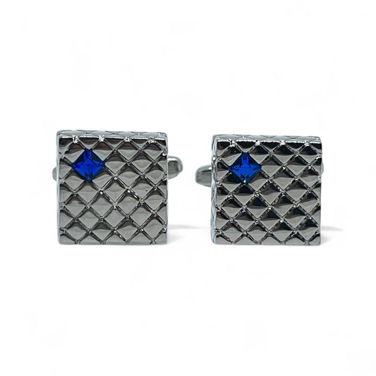 Rhombus Plaid Blue Rhino Silver Cufflinks