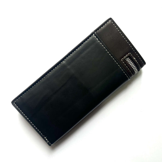 BIDENLI Leather Long Black Brown Zipper Bi-fold Long Wallet