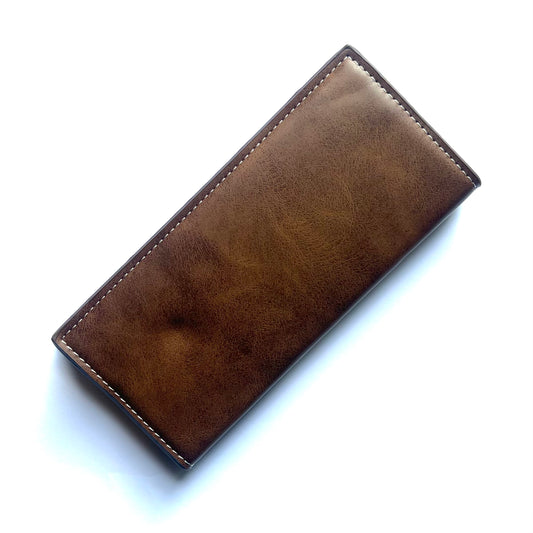 BIDENLI Leather Brown Bi-fold Long Wallet