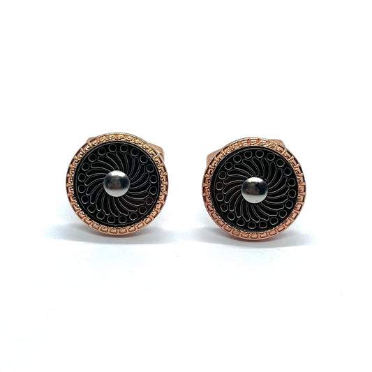 Cut Design Rose Gold Round Cufflinks