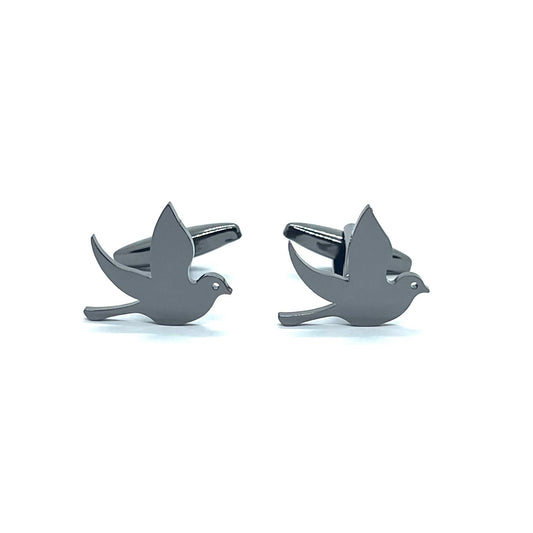 Pigeon Bird Grey Metallic Anime Cufflinks