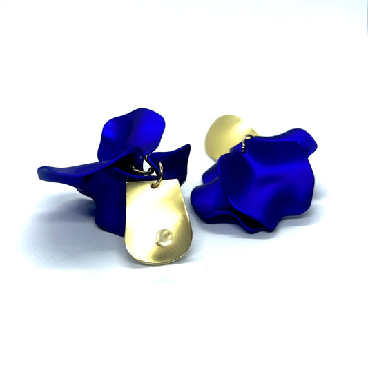 Irregular Acrylic Resin Geometric Blue Golden Design Earrings