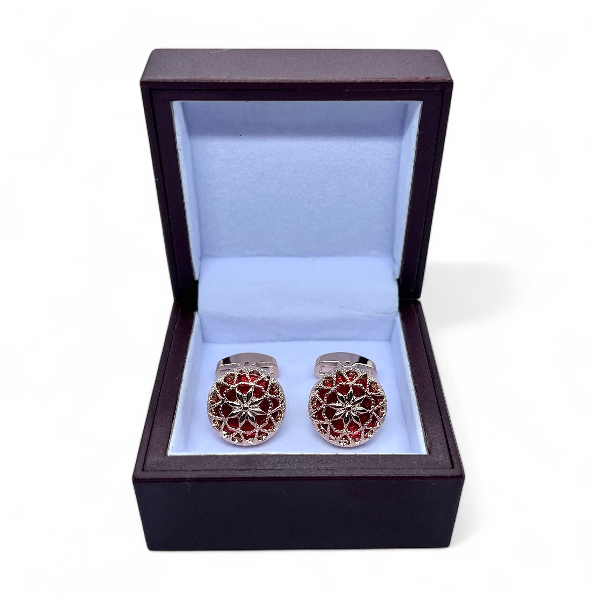Vintage Hollow Red Resin Rose Gold Cufflinks